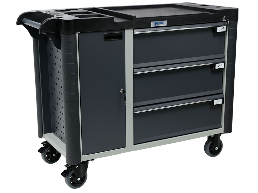 - Топ (пластик черного цвета) оснащён ложементами под инструменты для организации, хранения и удобства использования во время выполнения работ. Нагрузка на ТОП – 40 кг