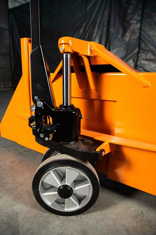 Гидравлическая тележка для бездорожья модели HW позволяет работать с паллетами на неровных участках. Очень актуально для предприятий, где материал хранится на открытых или крытых площадках без заливки пола. Большие пневматические резиновые колеса значительно облегчают проезд по неровностям. Достаточно большая грузоподъемность в 1,5 тонны позволяют работать и с тяжелыми материалами.